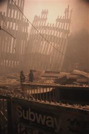 USA. NYC. 9/11/2001. World Trade Center Attack. Remains of the World Trade Center near the Cortlandt Street subway entrance.