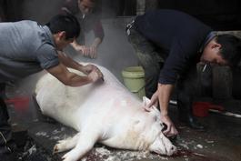 CHINA. Chaoshan, Guangdong Province. 2012. Coming of age festival in Yue Pu Village. A festival held for young men aged 23. The purpose is to show that he is hardworking and capable as a promising adult. The Giant Pig match is a competition that highlights this festival on the 8th day of the first lunar month in Yue Pu Village.