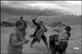 AFGHANISTAN. Kabul. 2005. Street children fight for their turf at a garbage dump on the outskirts.
