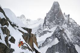 Professional freeride skier Giuliano Bordoni in the mountains around Chamonix.