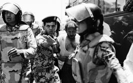 Egyptian soldiers escort a man that was lynched by a crowd in Tahrir Square after he was accused of being a spy.