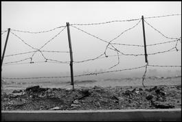 Barbwire on a fence overlooking downtown.