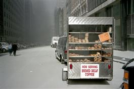 USA. NYC. 9/11/2001. An abandoned breakfast cart in the financial district after the collapse of the World Trade Center towers.