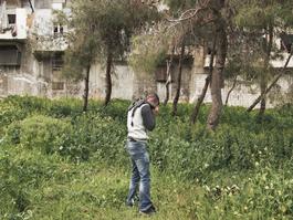 SYRIA. Aleppo. March 21, 2013. Rebel fighters mourn the death of a fellow fighter killed during fighting in the Salahedin district. The fighter was buried in a patch of land next to a mosque in the rebel-held Salahedin district.