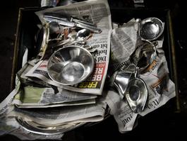 GB. London. 2012. Silverware inside the Margolis Silver workshop.