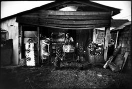 USA. Oregon. 1976. Author Ken KESEY riding his tractor out of the barn.