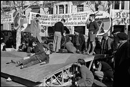 SPAIN. Barcelona. January 14, 1939. Children playing on a downed...