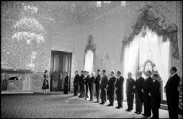 IRAN. Tehran. 1958. Nowruz reception, Golestan Palace. Queen Soraya greets members of the Cabinet in the Hall of Mirrors.