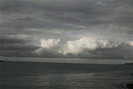 Clouds set over the horizon above the Atlantic sea along the Costa da Morte in Galicia, northern Spain.