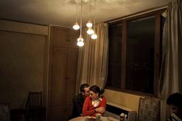 GEORGIA. Tbilisi. 2009. Giorgi DZIDZIGURI, 30, and Natalie NOZADZE, 22, having dinner at home. She works as TV journalist in Channel 1, as well as being a student. Giorgi is an executive director at Rustavi 2.