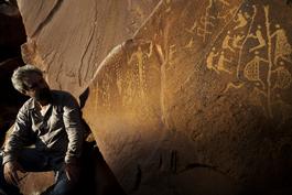 AUSTRALIA. Burrup Peninsula. 2009. The archeologist Ken MULVANEY, who is engaged in the preservation of Burrup Peninsula, one of Australia's most important spots for indigenous rock art with thousand of petroglyphs, drawings pecked into the rocks with stone chisles. The site is a national heritage. Nevertheless there is a gas plant built amidst of it, as well as many other industrial facilities. The authorities are planning further expansion of the industrial sites, which by default harms the unique rock art, some of which is over 30,000 years old.