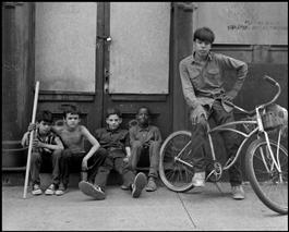 USA. New York City. 1967. Beekman Street, Sunday morning. Ginco, Tonto, Frankie, John Jr., and Nelson, after exploring the buildings.