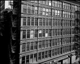USA. New York City. 1967. The west side of Gold Street between Ann and Beekman Streets. The metal front of this type of building was ordered in sections from catalogs. An identical building, only a section less in length, stood on the corner of Beekman and Pearl Streets.