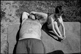 RUSSIA. 70 kilometers from Yekaterinenburg. 2010. Sergey POLOVTEV, aka "Kaban" (wild boar), and his nephew at a picnic.