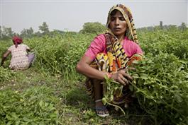 INDIA. Gopalpur, Uttar Pradesh. 2009. Vidyawati, sister-in-law to Kiran Yadav, cutting first peppermint harvest.