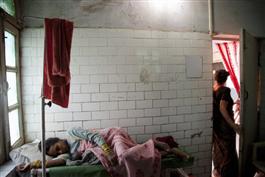 INDIA. Dewa, Uttar Pradesh. 2009. Shakeela rests following healthy delivery at PHC, Primary Health Center.