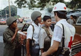 NICARAGUA. Managua. 1979. Members of the Red Cross help former National Guard trying to leave the capitol.