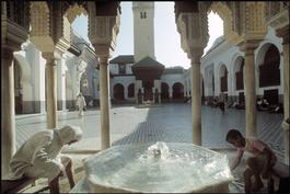MOROCCO. Fez. 1991. Quaraouyine mosque. Muslims performing the...