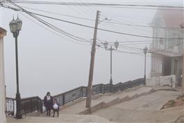 Chile, Valparaiso, morning fog on Playa Archa hill