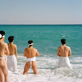 JAPAN. Wakayama Project. Shinto festival on beach at Shinghu....