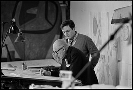 FRANCE. Paris. 7th arrondissement. 35, rue de Sèvres. "Atelier 35 S". Le Corbusier going over design plan with one of his collaborators. 1960.