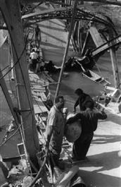 Refugees crossing the destroyed Allenby bridge on the Jordan river becoming the new border between Israel and Jordan.