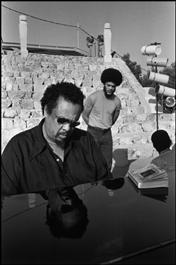 FRANCE. Provence-Alpes-Côtes d'Azur region. Var departement. Ollioules. Châteauvallon Festival. On the stage of the big amphitheater. In the foreground, US jazz musician Charles MINGUS (double bass) here playing the piano. In the background, his son Eugene MINGUS (congas). Soundcheck for the evening concert. CHARLES MINGUS QUINTET. Tuesday, August 22nd 1972.