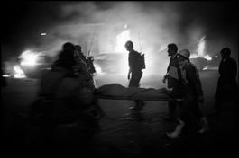 FRANCE. Paris. Red Cross people carrying a hurt person in the night. Latin Quarter. 10th May 1968.