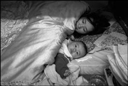 FRANCE. Paris. A couple of Chinese clandestine immigrants has just arrived in France with their baby and is accomodated in the home of a member of the family, also an illegal immigrant, settled in France. 1997.