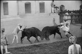 INDIA. Gujarat. Baroda (Vadodara). 1948. Bullfight during festivities for the 39th birthday of the Maharajah.