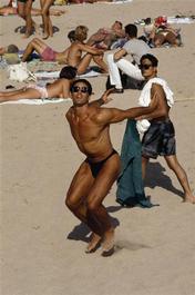 FRANCE. Cote D'Azur. Nice. The Fine Art of Sunbathing. Volleyball on the beach. 1992.