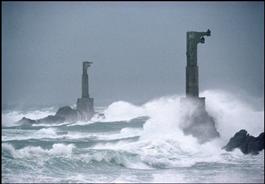 Towers meant to carry cables enabling the guards of the Nividic lighthouse to reach the platform.