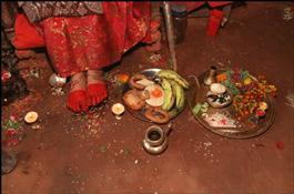 Offertories to the current Kumari of Patan, Chandrashila BRAJRACHARYA (8 years old).