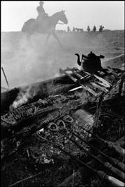 Estancia CHIRIPA, a property of 23.000 hectares. During the annual catching of year-old calves for branding, vaccination, horn cutting, castration. In the foreground, branding irons.