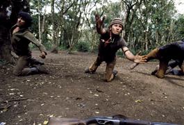 NICARAGUA. North of Esteli. 1978. Young guerillas training the launch handgrenades in mountain camp.