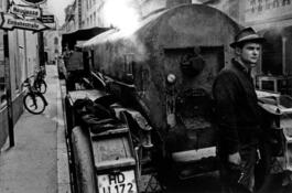 WEST GERMANY. Heidelberg. 1960. Machine to tar the road surface....