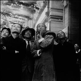 CHINA. Hubei. Hankou. April 29th, 1938. On Emperor Hirohito's Birthday. Chinese watching a battle between the Japanese bombers and the Chinese fighter planes.
