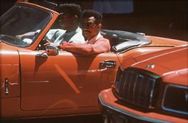 Two black people in a Cabriolet.