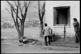 Un émeutier s'écroule, foudroyé par une balle, lors de la prise...