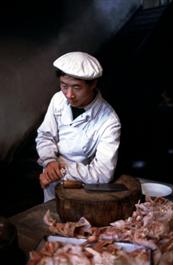 China. Cook in Peking duck restaurant. 1979.