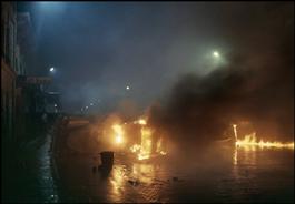 FRANCE. Paris. May 68. Riot police fight students who set fire to cars in the Latin Quarter.
