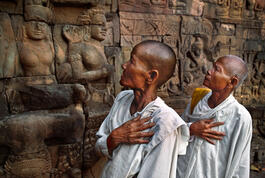 CAMBODIA. Angkor Wat. 1998. Buddhist nuns at the Leper King Terrace.
