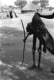SUDAN. Duar. A patient tries to sit down to wait for treatment. 1991.