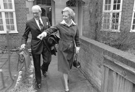 GB. London. Margaret THATCHER and her husband Dennis THATCHER,...
