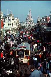 Rue principale. Au fond : Le château de la Belle au bois dormant. *