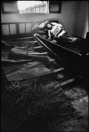 CHINA. Sichuan. 1990. Mental Hospital Sichuan. Xie Zhimei’s daughter Xie Qunying is 24 years old. When the hospitalization funds paid by her family ran out, she was moved from a regular ward to this abandoned room. Her life is hanging by a thread.