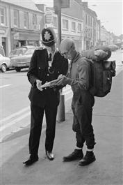 G.B. WALES. Bangor. A walking tourist seeks direction from the local policeman.