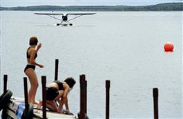 FRANCE. Aquitaine region. Landes department. 1999. Sea plane landing on the Etang de Biscarrosse et de Parentis (Pond of Biscarrosse and Parentis).