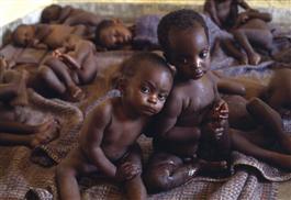 AFRICA. ZAIRE. Unaccompanied children in temporary shelter.