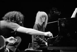 FRANCE. Paris. 4th arrondissement. Theatre de la Ville. 1st editionof the Paris Jazz Festival. To the right, US jazz musician Carla BLEY (piano, organ). During the rehearsal and soundcheck for the evening concert in 2nd part at 8:30pm. THE CARLA BLEY BAND. Thursday 6th November, 1980.
